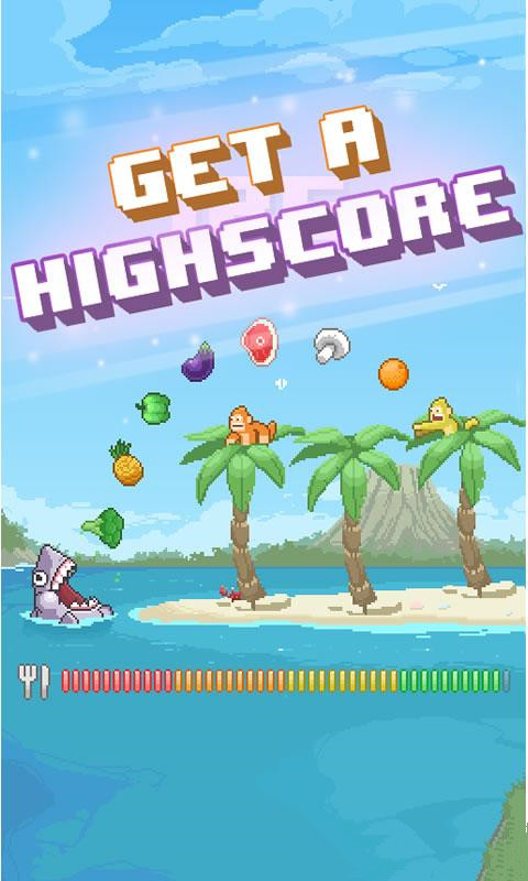 《吃素的鲨鱼 Salad Shark》是一款轻松令人欲罢不能的休闲小游戏。竟然有鲨鱼不吃肉你敢信?他竟然爱吃茄子黄瓜菠萝!还和岸上的几只猴子有一腿!这个世界太疯狂了~~不过,不吃东西鲨鱼会饿的~你得点击屏幕让它张开嘴!猴子们会把他们从椰子树上采摘来的各种蔬菜水果扔给你,当然,椰子树上也生产牛排。别忘记,鲨鱼可不吃肉!【游戏特色】