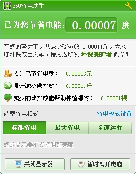 5、360省电助手可以快速的关闭显示器,很实用。