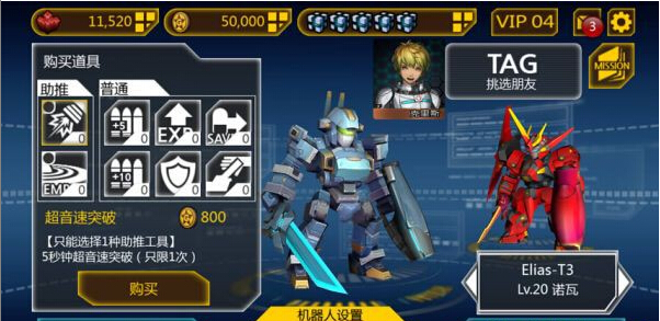 游戏操作采用左右两边的按键来控制角色,左边的按键用来控制机甲的跳跃,右边的按键可以选择武器用来攻击前方拦路的敌人,玩家通过击败所有敌人,赚得金币来提升各种装备,提高战斗力,创造出一个属于自己的最强大的机甲