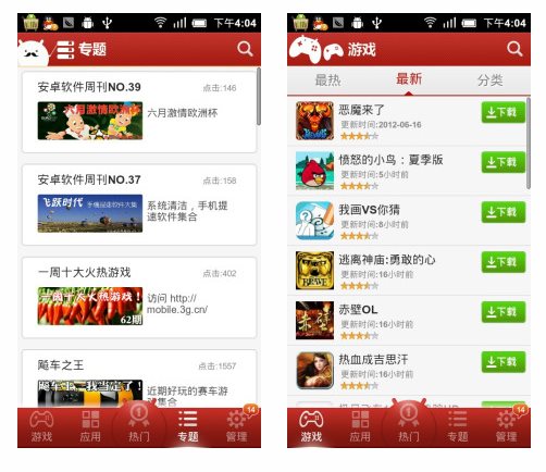 3G安卓市场的资源十分丰富,分类清晰明了,而且这些分类内容更加符合中国用户的使用习惯,让用户使用到属于自己的电子市场。