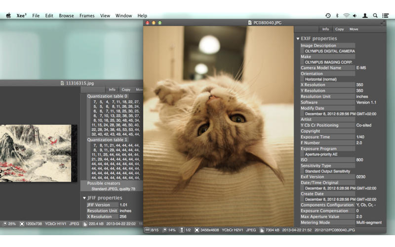 3、Xee也可以显示图像文件的大量元数据。为此,它使用影像ExifTool,最全面的元数据的图书馆之一。