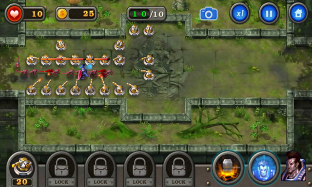 机甲防御战争一款防御战斗游戏,在防御机战类游戏,刚开始我们有30的游戏金币,在右下角有三种不同价格的武器供我们选择。按住你要的武器拖动到屏幕上的任何位置,接着就开始保卫我们的家园了!刚开始只是一些小兵入侵到后来就会有更高级的,每攻击一个小兵或者其他都会有金钱奖励的。这个奖励很重要,我们可以用这些奖励的金钱买更强大的武器来抵抗外来敌人的入侵!