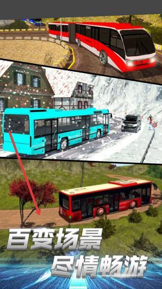2. 进入“百变场景”,驾驶巴士在山路、雪地等多样地形展开挑战,通过虚拟按键操控方向与油门,以适应各种不同路况。