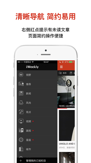 所有的新闻报道及时尚资讯均由专业的团队精心撰写,我们为你提供包括国际新闻、美容、女性、科技、时尚、娱乐、设计、游戏、汽车、腕表、美食等多个领域的头条内容及热门资讯。我们的视野将涵盖纽约、伦敦、巴黎、东京、上海、北京、广州等全球知名都市,为你带来最前沿最时尚的资讯。新创的iRadio电台栏目,带给你随走随听的资讯享受,永不落伍!