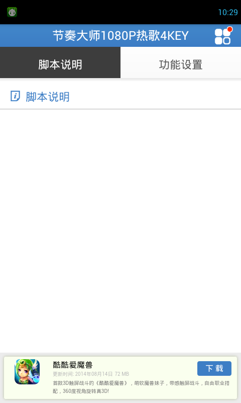 节奏大师1080P热歌4KEY下载 v1.5.2 安卓版 节奏大师修改器,这是节奏大师1080P热歌的4KEY 修改器,该版本只支持1920*1080分辨率的手机使用。使用该软件,轻松打破关卡限制,让你不再为困难的歌曲而烦恼,轻轻松松顺利过关。