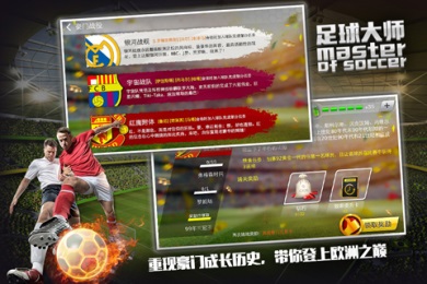 新老球星齐上阵梅西、C罗、齐达内、亨利、罗纳尔多,组建你的梦幻阵容。足球大师不仅仅有球星,有激情,更有满满的足球回忆!玩家扮演一名传奇球队教练,通过发掘球星、培养球员、参与世界各地联赛,一步一步打造成世界顶级球队。游戏中竭尽全力复刻足球俱乐部经营过程,塑造您想要的足球经理游戏标杆之作!值得一玩的游戏哦!