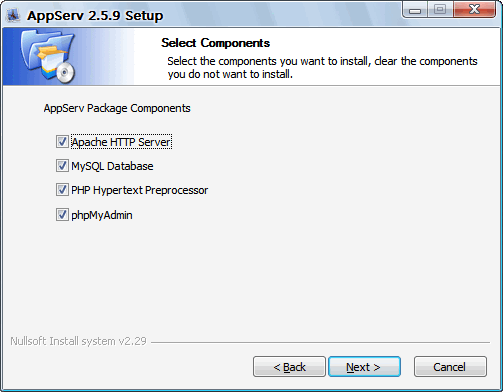 AppServ是PHP网页架站工具组合包,泰国的作者将一些网路上免费的架站资源重新包装成单一的安装程序,以方便初学者快速完成架站,AppServ 所包含的软件有:Apache、Apache Monitor、PHP、MySQL、PHP-Nuke、phpMyAdmin。