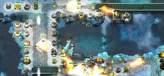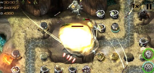 游戏中敌军出现的道路是多方位的,并不是某一条固定的小马路,有可能是从一片较为宽大的场地,都是敌人的可活动范围,这种情况下他们的自由度比较高,在武器的选择上玩家也要巧妙一点,多安插一些可以在道路上安置的炮塔,有时候会从从两个方向同时对城门和营地进行攻击,这时候就要在两地间来回传送防守的大个子啦,这种丰富多变的路线设定也让游戏变得更有趣味性,好在每次一波敌人出现前都会预告一下,有箭头在某条道路上指引,表示待会这里会有敌人出现。