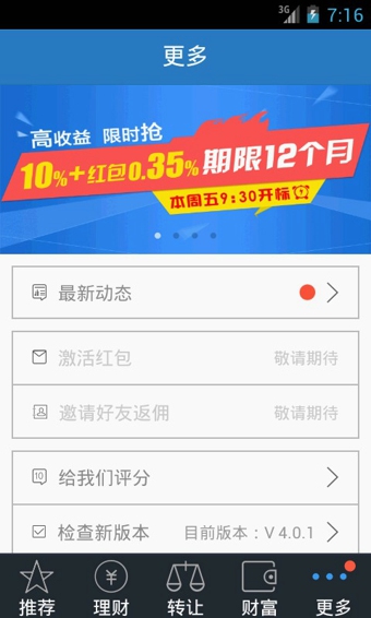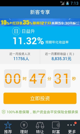 鑫合汇为投资者提供安全、透明、灵活、高收益的理财产品。全牌照承销机构资质,实力雄厚的国内一流专业担保公司担保,银行级系统安全防范措施,高收益项目渠道保障,是最值得您信赖的网络财富平台。【软件特点】