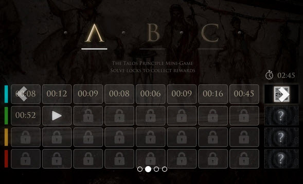 神之符印是即将到来的Croteam开发的第一人称解谜游戏塔罗斯的法则的前序作品,而后者将会包含更多的独特新奇的解谜成分。游戏中,玩家将漫步于葱郁的草丛、森林、古堡遗迹里,解开一路上遇到的各种谜题,包括激光射线迷阵,解开上锁了的门,又或者是通过扰乱时间的流动,来解开炮塔防御等等。