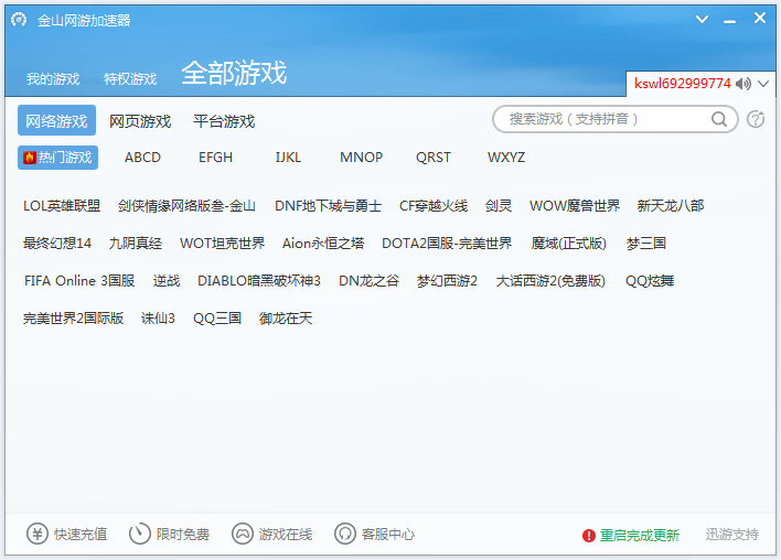 1.金山网游加速器目前支持哪些游戏?