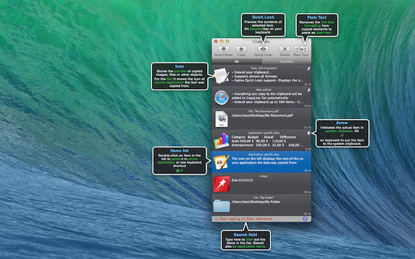 3、支持任何Mac OS X支持的文字,图片,文件和任何应用程序特定的复制粘贴数据格式。