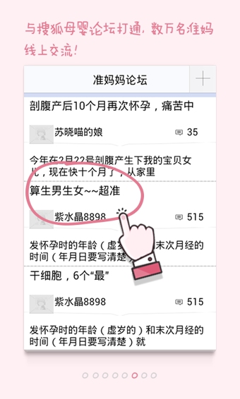 6、【母婴论坛】与搜狐母婴论坛打通,数万名准妈妈线上交流,怀孕辣妈们沟通孕儿经验,酸甜苦辣,都来晒!