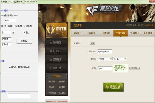 CF装逼版CDK生成器v1.0自慰版 cfcdk生成器是一款免费的CF穿越火线CDK生成器,玩家可通过自定义CDK物品名称、有效期、区服等信息,来生成一个自慰版的CDK兑换图片。有需要的朋友可以下载。