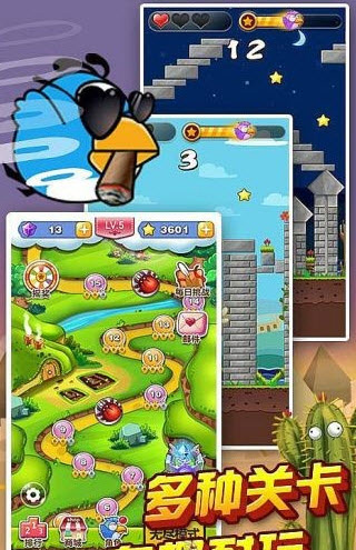 单机鸟英雄是一款非常有趣的益智大作,游戏画面精美,障碍物新奇多变,能够带给玩家最真实的体验。 游戏过程中会出现各式各样的障碍物,你需要帮助呆鸟克服这些不同的障碍物,最终靠你的聪明智慧解锁下一关,挑战终极大Boss。 游戏的主角是一只呆呆萌萌的鸟,它即将要踏入丰富多彩的冒险旅程在呆鸟冒险的旅途中,你要面对险峻壮丽的长城,古老神秘的埃及,法老的诅咒和尘土飞扬的沙漠,都将带给你不一样的惊喜。【游戏特点】