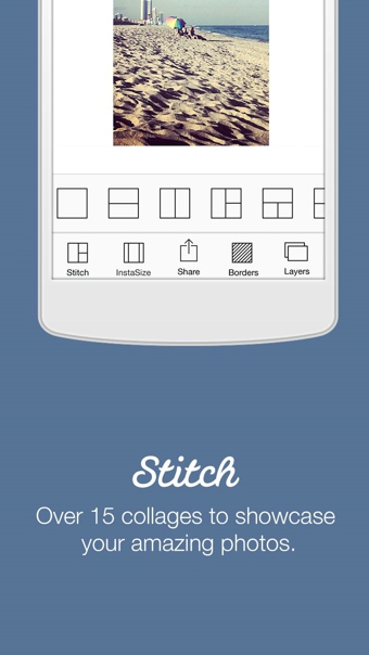 使用Stitch选项,利用内建的相框,创造有趣的拼贴。这是编辑Instagram照片拼贴最快最简单的方法!只要选择一张照片,然後套用版型就可以了。