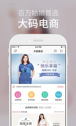 新增优惠券提醒功能,有券不会再错过,7.20大码清仓季,胖mm的时尚购物平台,优惠无底线,让你买的爽