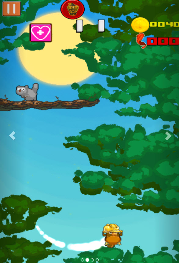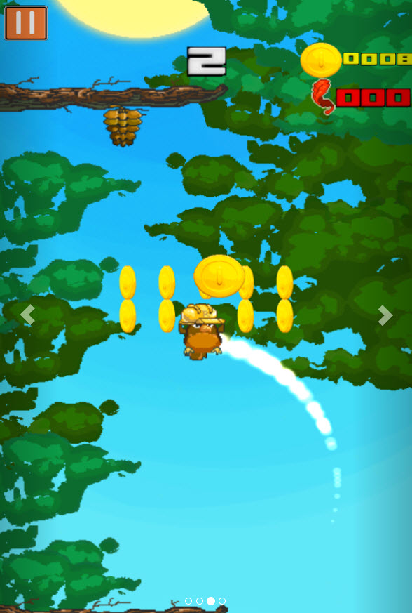 你或许已经在愤怒的小鸟扔出了不少的鸟,你大概也在Tiny Wings中滑翔过很长的距离,你也有可能在Flappy Birds里摔过上百次,那么我们来看看你能在旋转小鸟方面又能做得怎样!旋转老鹰的操作方法易于学习但难于掌握,只需要点击屏幕,老鹰就可以加速旋转,而松开即可恢复原先的速度,飞升的过程中,你需要避开松果、松树、流星、火箭、蝙蝠以及其他的危险的地方,尽力飞到你能飞到的最高的地方吧!