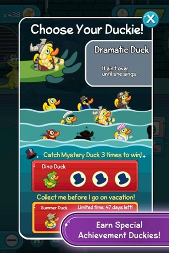 完成各类成就并赢取特殊主题小鸭,例如角斗鸭、宇航鸭、草裙鸭等等!