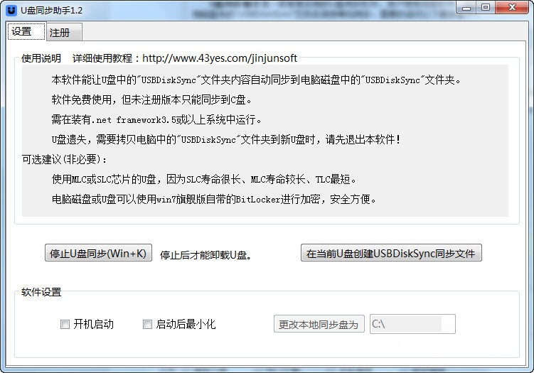 3、软件免费使用,但未注册版本只能同步到C盘。