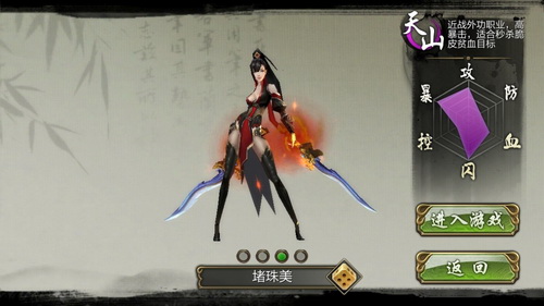 近战职业,外观是帅气性格的御姐,外功,攻击、暴击、闪避能力突出,适合暴击秒杀残血或者血薄的目标。