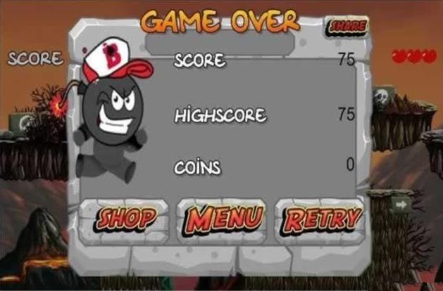 独特的游戏玩法,可以控制主角的跳跃高度;炸弹人跑酷游戏比较有难度,玩起来会比较困难;