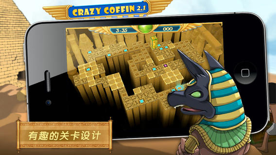 疯狂的棺材游戏中拥有33个充满挑战的关卡,让你充分领略游戏乐趣。4种游戏机关设计,适当增加了游戏的挑战性与可玩性。精美的游戏画面,真实的金字塔内部场景再现,让你重温几千年前的文明古国。超炫的3D视觉效果和流畅的游戏操作。疯狂的棺材是一款有趣耐玩的解谜类游戏。 古埃及法老的棺材怎么暴露在野外?是有神秘力量在驱使着它?还是一切都早已注定?这一切都在等待你深入金字塔内部,揭开它神秘的面纱 。按神的旨意将棺材运送至金字塔顶部,等待你的,是意想不到的奇迹。