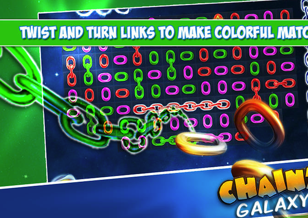 《银河锁链》的游戏方式有点像宝石迷阵等,都是同色3个以上的消去。不同的是,《银河锁链》中需要改变锁链的方向,使3个临近的同色锁链能够相连;而宝石迷阵等是改变相邻的两个宝石的位置使3个临近的同色宝石能够相连。因为锁链的消去有一定的时间,所有手快是必须的。《银河锁链》的游戏画面还是比较精致的,游戏性也很不错。