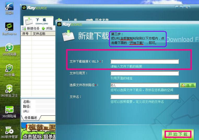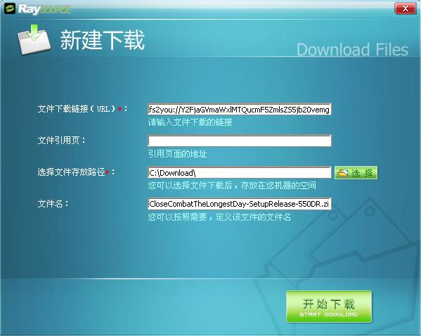 5、点击Raysource主界面上的新建任务,然后粘贴下载链接,并点击开始下载: