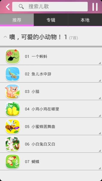 儿歌专辑持续会有更新,儿歌支持下载到本地,无需联网即可播放。