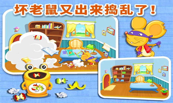 1、简单操作,贴心引导,让宝宝轻松完成各项家务。2、精致的关卡设计,宝宝完成整理后将获得足够的鼓励。
