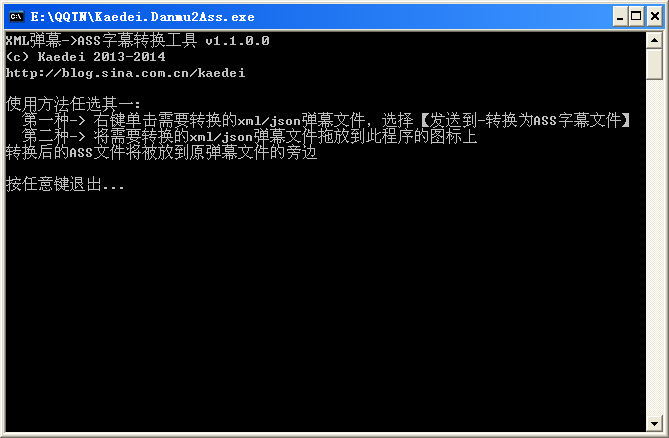 第二种-> 将需要转换的xml/json弹幕文件拖放到此程序的图标上