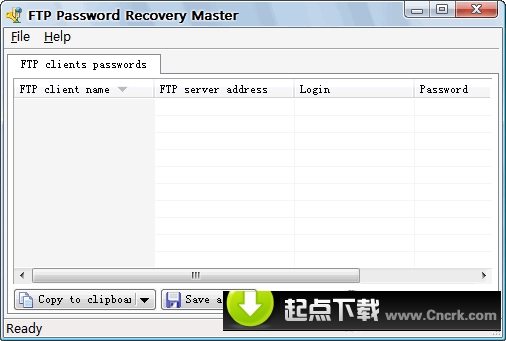 FTP Password Recovery Master V1.1 汉化绿色特别版 FTP Password Recovery Master是一款通用的FTP帐户密码恢复工具。它可以轻易的从下列客户端中恢复密码,客户端包含CuteFTP, WS_FTP, FileZilla, SmartFTP, FlashFXP and Bulletproof FTP