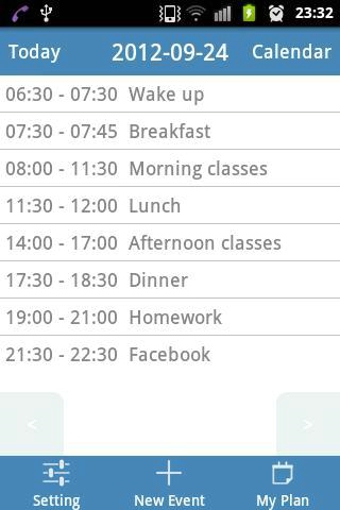 你是否有时候会忘掉重要的约会或者忘掉一场重要的球赛,或者去了超市忘记买什么了?现在用每天计划来记录你每天要干的事情,比如什么时候开会,什么时候欧冠决赛,什么时候朋友聚会,什么时候还信用卡欠额,那么你不会错过任何重要的事情。 如果你是学生,你还可以把它当作课程表来用。 另外还提供了一个桌面工具方便直接显示。