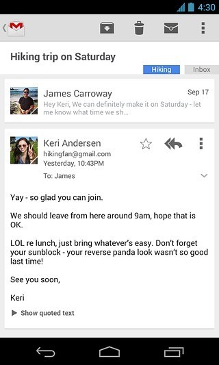 全新的Gmail界面风格;越为人性化的操作体验以及接近PC上的操作方式;