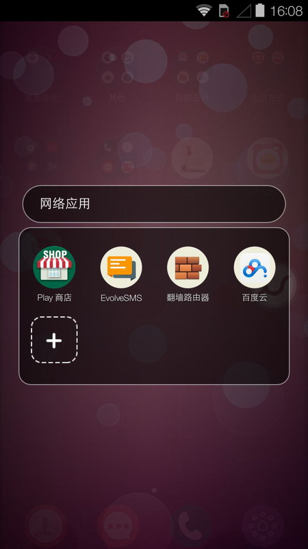 ①自定义文件夹:用手指长按住一个应用的图标,拖放到另一个图标上,这样就可以生成一个文件夹