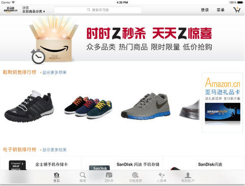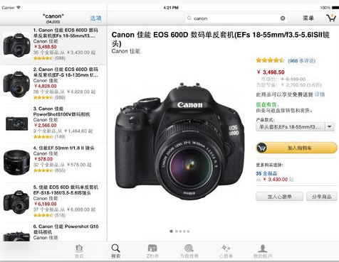Amazon最早是一家网上书店的,后期转型最网上购物,如今做到全球最大电商公司。有了亚马逊iPad版你可以自由的访问Amazon.co.uk、Amazon.de、Amazon.fr、Amazon.com、Amazon.it、Amazon.cn或 Amazon.co.jp 购物。