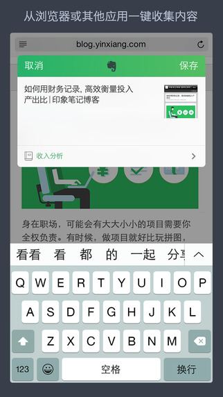 一键保存网页图文:从手机浏览器分享到印象笔记。