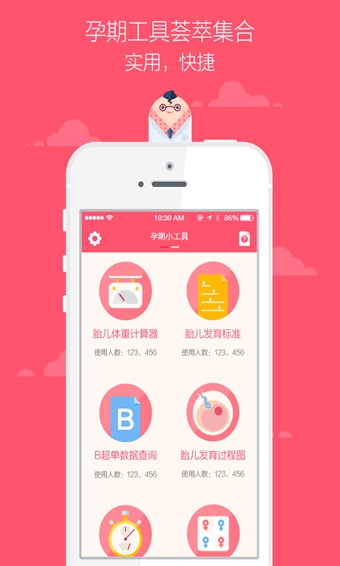 宝宝健康,一手掌握,准妈妈数胎动必备应用。集合各种孕期小工具,为准妈妈和宝宝的健康保驾护航
