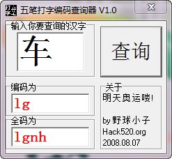 1、大小仅194K2、使用方便。点击“查询”按钮,不管是单字、还是词组均能立即得出五笔字形编码。3、绿色单文件,不写注册表