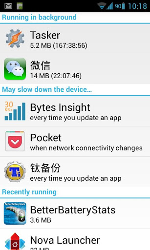 3新的应用排查顾问将帮助您分析设备中安装的应用,找出那些启动长时间后台服务或经常性自动运行(例如网络连接改变时、解锁屏幕时、安装/卸载/更新应用时)的应用。