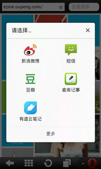 3、分享功能可将文本、网页等轻松分享至微博、空间、短信、笔记等服务;