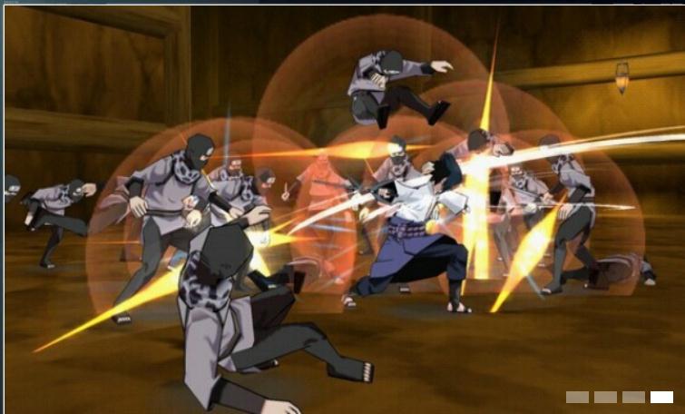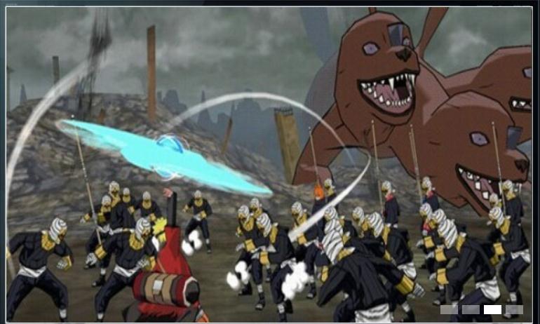 冲击战斗:所谓的冲击战斗也就是在面对大批杂兵时,一次性的利用体术或者忍术来将所有敌人打倒的无双型战斗,本作之所以被大家称作“火影无双”,也即是来源于这种爽快感。