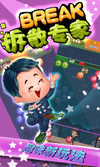 《拆散专家》由同名电影改编,最适合年轻人的拆散游戏。在游戏中,有呆萌的Q版明星角色,风趣生动刺激你的搞笑神经。还有可爱抢眼的丰富场景挑战你挑剔的视觉。更有紧张刺激的冒险闯关等你来战。另外还加入了前所未有的BOSS战模式。每个场景都有不同的终极BOSS等你挑战。在游戏中赚取金币,使用各种新奇道具,用萌萌的主角打败BOSS,体验极致的爽快感。【游戏特色】