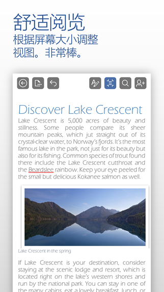 ?重排视图:在您的手机上,可以选择实际文档布局,或易于阅读的布局。