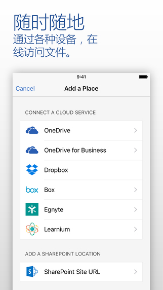 新存储选项:打开、编辑并将工作保存至 iCloud 和其他在线存储服务。 (要求安装 iOS 8)