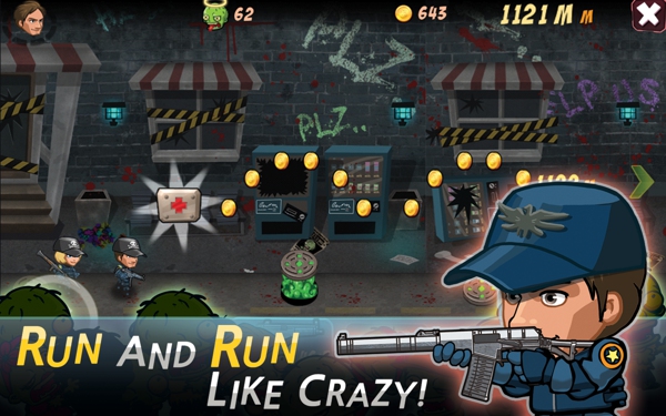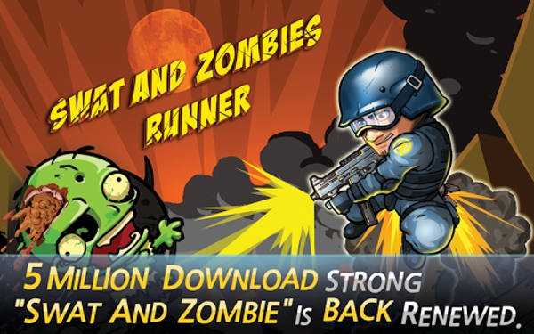《特警追僵尸 SWAT and Zombies Runne》旋风特警队在一次直升机坠毁事件中全员遇难除了你以外,现在你必须回到大队伍复命肩负起这个使命。但是这些恶心可怕的僵尸和无名的巨人僵尸挡住了你回去的道路。你必须冲破这些僵尸的包围,生存下来!在《特警追僵尸 SWAT and Zombies Runner》这款敏捷游戏中,你将扮演一名正义的特警,去打爆僵尸找到生存之路。游戏操作简单,左右侧分别是跳跃和下滑。按着屏幕你可以用狙击镜瞄准僵尸。游戏紧张刺激,节奏非常快,而且到最后总会有一个超大型僵尸BOSS出现,挑战性十足。喜欢打僵尸的朋友不要错过啦!【更新日志】