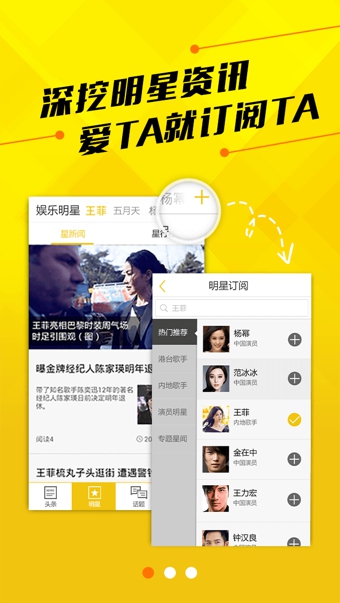 娱乐圈圈下载是一款具有最新最火的娱乐资讯头条的软件。在这款软件里你可以了解到你最喜爱的明星的最新资讯,还可以建立一个新的娱乐圈,帮助你喜爱的明星上头条。