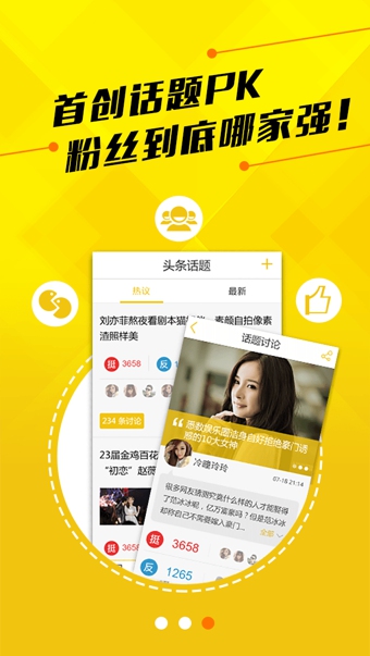 1、新增话题模块功能,针对某新闻展开热点讨论,对话体可以建立PK