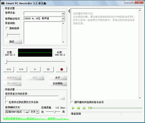 Smart PC Recorder V3.0 简体中文绿色免费版 Smart PC Recorder是一款非常好用的录音工具。它能将您计算机声卡发出的各种声音录制成MP3或WAV文件。声音来源可以是麦克风、线路输入、电话输入、磁带机、录像机、以及其他各种放音设备。它还可以从其他Windows程序中录音,如Winamp, Media Player